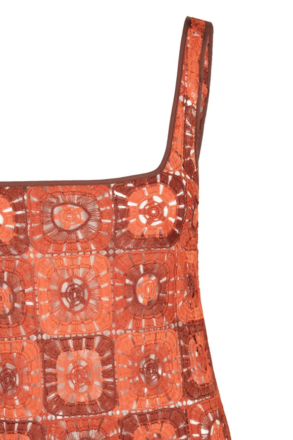 Styling Notes:This Ankle Dress Effortlessly Slips On, Making It A Convenient And Stylish Choice For Any Occasion. In Striking Terracotta And Red Hues, It Features An Intricately Embroidered Pattern That Adds A Touch Of Artistry To Your Look. Crafted From Crochet, It Offers Both Style And Comfort, Ensuring You Make A Statement With Ease. Size And Fit:Designed For A Relaxed Fit, Offering A Comfortable And Laid-Back Style. True To Size, Please Consult Our Size Chart For Reference.Product Details:Embroideredclosure: Slip Oncomposition: 100% Polyesterfabrication: Poly Crochetcolor: Terracota/Redhand Washmade In Colombiashipping And Return Policies:Complimentary Shipping And Returns. Terms And Conditions Apply. Please Visit Our Shipping And Return Policies.