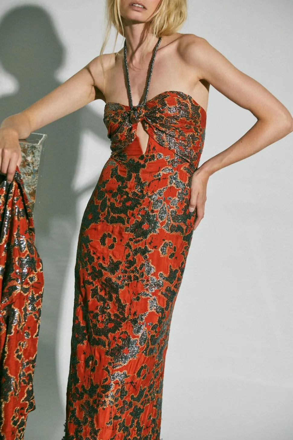 Styling Notes:An Enchanting Dress Adorned With Exquisite Embroidery, Boasting A Sleek And Seamless Fit That Accentuates Femininity Through Delicate Ties Adorning The Heart-Shaped Neckline. It'S The Ideal Selection For Cocktail Parties And Special Occasions.Size And Fit:Designed For A Slim Fit. True To Size, Please Consult Our Size Chart For Reference.Product Details:Embroideredclosure: Back Zippercomposition: 100% Silkfabrication: Silk Jacquardlurex Tie Dye Orange/Silverdry Cleanmade In Colombiashipping And Return Policies:Complimentary Shipping And Returns. Terms And Conditions Apply. Please Visit Our Shipping And Return Policies.