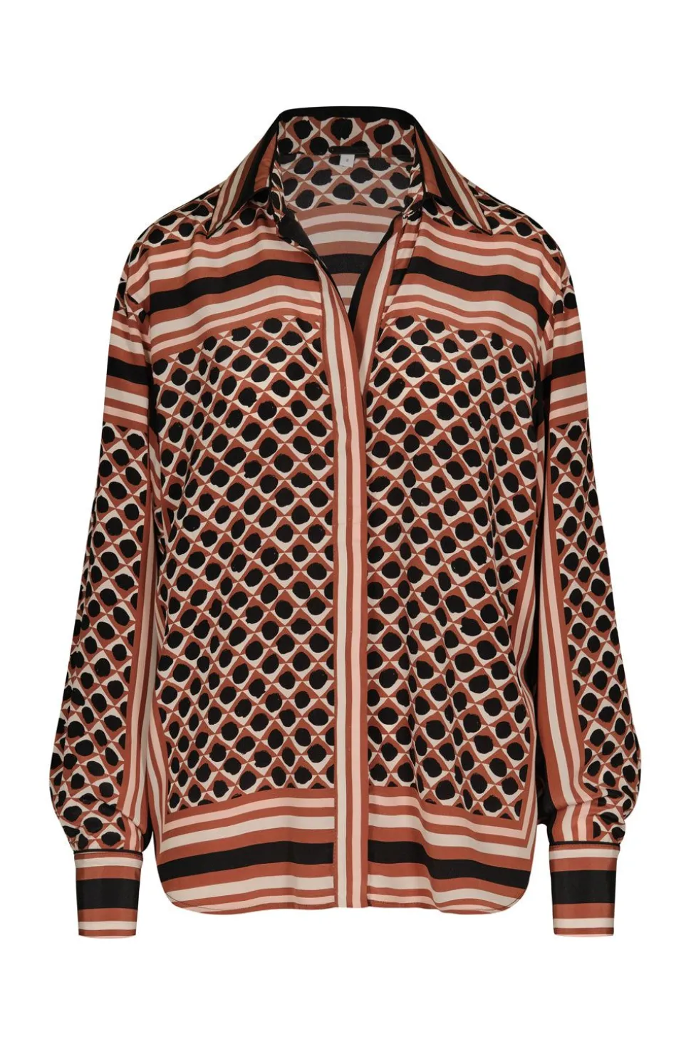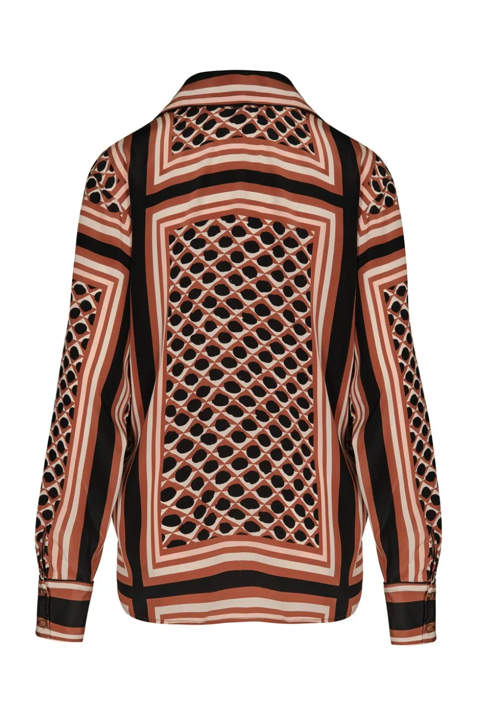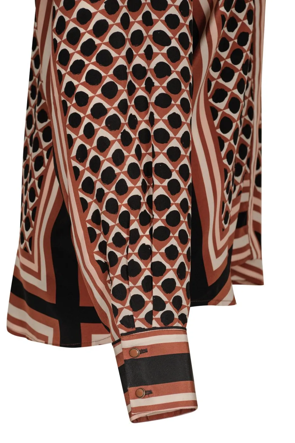 Styling Notes:This Captivating Shirt Features A Timeless Black, Brown, And Ecru Pattern That Exudes Elegance. The Relaxed Yet Chic Look Of This Shirt Makes It A Versatile Addition To Any Wardrobe, Allowing You To Create Stylish Ensembles Effortlessly. Pair It With Bottoms From The Collection Or The Matching 'Cowboy Slang Midi Skirt' To Achieve A Complete Jo Look. Size And Fit:Designed For A Relaxed Fit, Offering A Comfortable And Laid-Back Style. True To Size, Please Consult Our Size Chart For Reference.Product Details:Closure: Front Buttonscomposition: 100% Silkfabrication: Silk Cdccolor: Sixties Bianchini Scarve Black/Brown/Ecrudry Cleanmade In Colombiashipping And Return Policies:Complimentary Shipping And Returns. Terms And Conditions Apply. Please Visit Our Shipping And Return Policies.