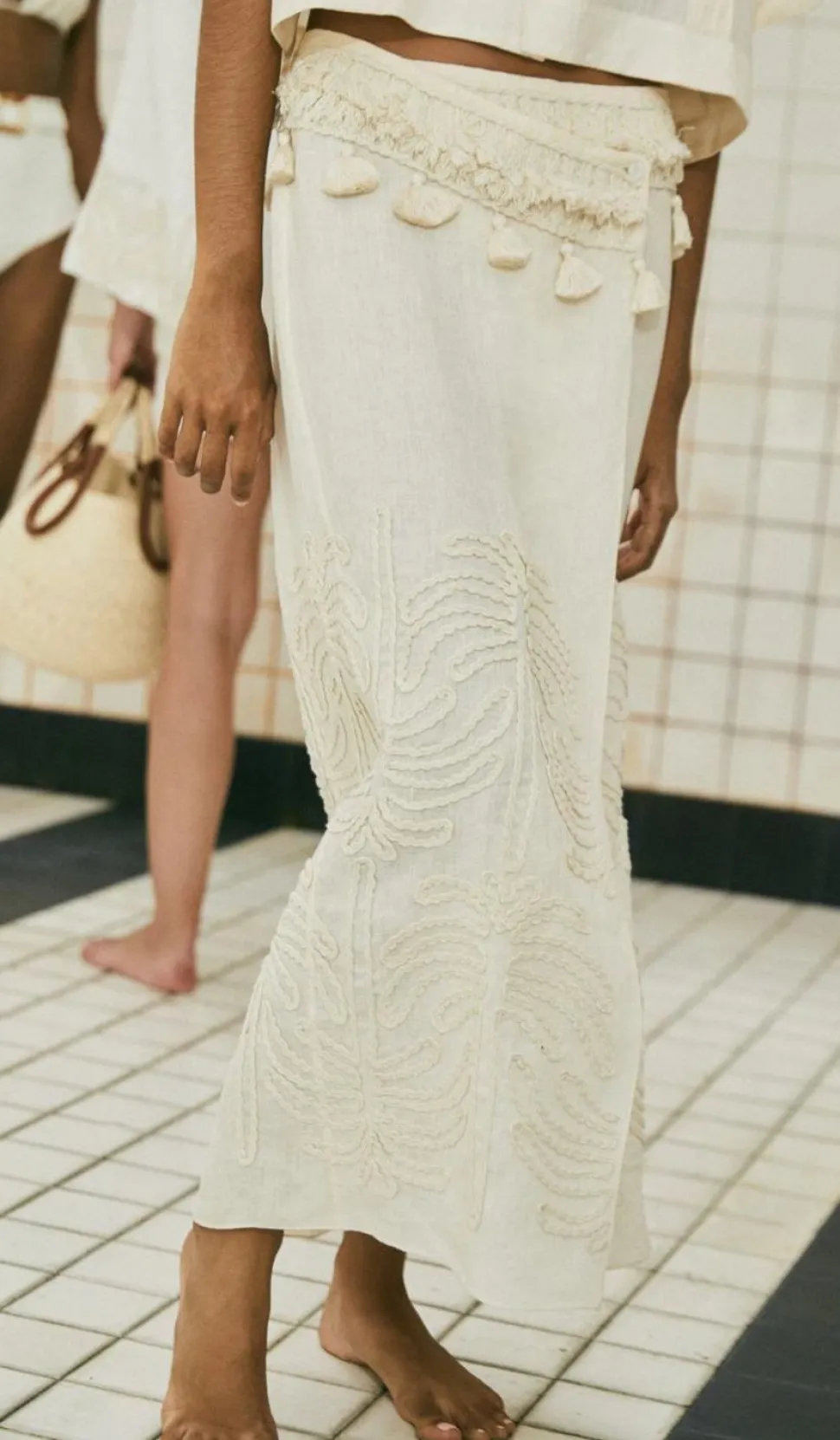Styling Notes:Crafted From Organic Linen, It Offers A Relaxed Fit That'S Perfect For Leisurely Beachside Strolls Or Simply Loungin Into The City On A Hot Day. This Versatile Piece Pairs Effortlessly With Various Tops And Swimwear From The Collection, Allowing You To Curate Your Ideal Beach Ensemble With Ease.Size And Fit:Designed For A Relaxed Fit, Offering A Comfortable And Laid-Back Style. True To Size, Please Consult Our Size Chart For Reference.Product Details:Embroideredclosure: Wrap Aroundcomposition: 100% Organic Linenfabrication: Organic Linencolor: Ecruhand Washmade In Colombiashipping And Return Policies:Complimentary Shipping And Returns. Terms And Conditions Apply. Please Visit Our Shipping And Return Policies.