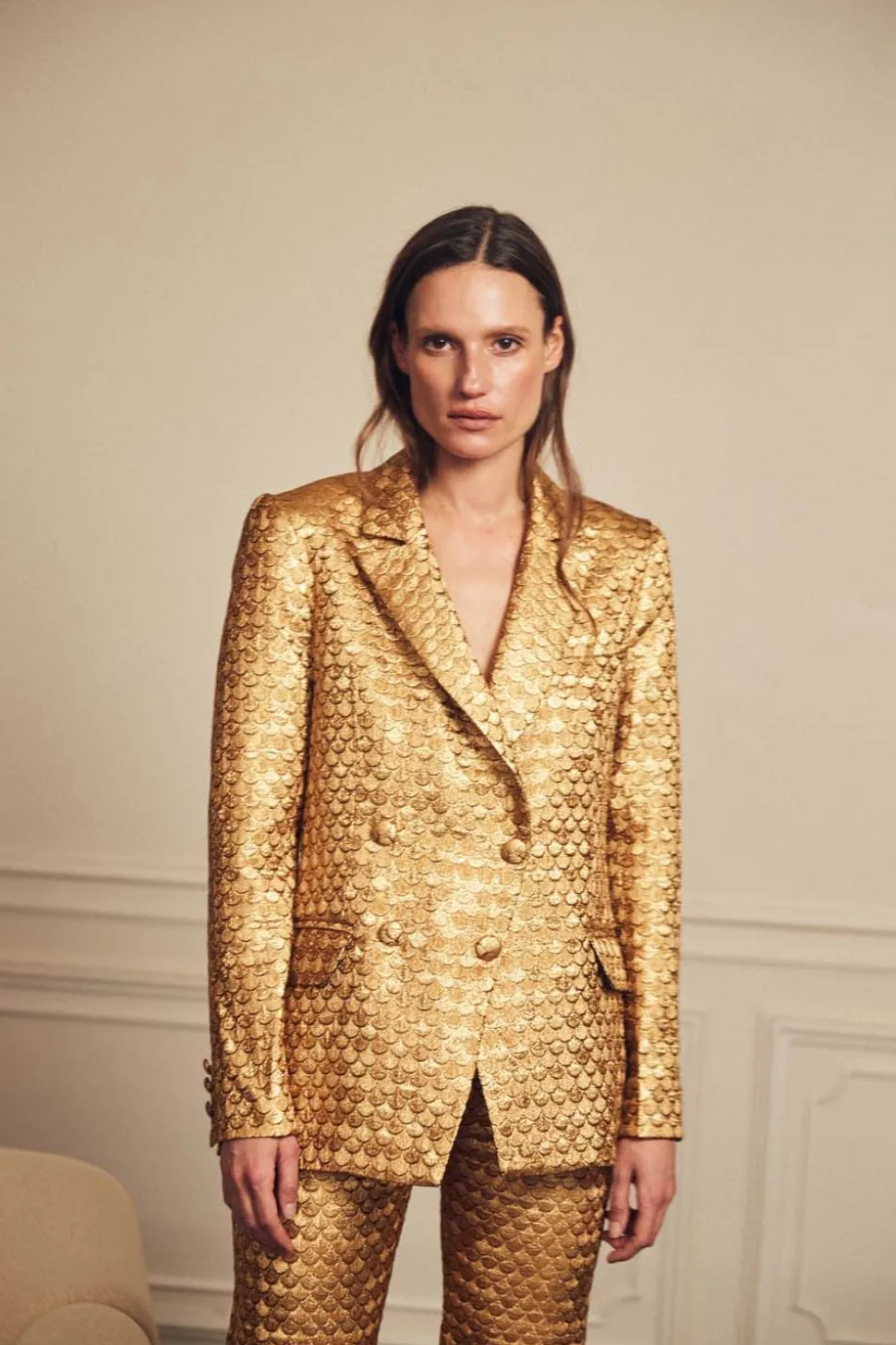 Styling Notes:A Fitted Silhouette In A Sophisticated Gold Jacquard. Elegant And Versatile, This Blazer Makes A Unique Statement Piece To Suit Any Occasion. Product Details:Closure: Front Zippercomposition: 45% Acrylic, 41% Cellulose Acetate, 14% Polyesterfabrication: Jacquardcolor: Golddry Cleanmade In Colombiashipping And Return Policies:Enjoy Complimentary Shipping And Returns. Terms And Conditions Apply. To Learn More, Please Visit Our Shipping And Return Policies.