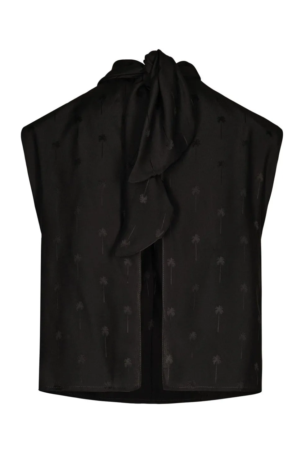 Styling Notes:This Top Showcases A Captivating Crisscrossed Design With A Back Tie, Enhancing The Elegance Of Your Ensemble. The Open Back Adds A Distinctive And Enticing Style Statement To Your Outfit. To Achieve A Coordinated Look, Effortlessly Combine It With The Matching 'Wild West Woman Pants.' This Versatile Outfit Can Be Easily Dressed Up Or Down, Allowing You To Choose Between Flat Sandals Or High Heels From The Collection.Size And Fit:Designed For A Relaxed Fit, Offering A Comfortable And Laid-Back Style. True To Size, Please Consult Our Size Chart For Reference.Product Details:Closure: Tie At Backcomposition: 100% Silkfabrication: Silk Jacquardcolor: Blackdry Cleanmade In Colombiashipping And Return Policies:Complimentary Shipping And Returns. Terms And Conditions Apply. Please Visit Our Shipping And Return Policies.