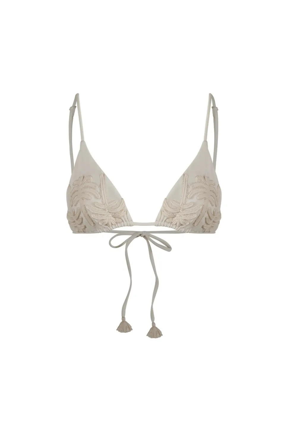 Styling Notes:This Bikini Top Features A Classic Triangle Design That Embodies Timeless Simplicity While Also Adding A Touch Of Uniqueness With The Signature 3D Corded Palm Tree Print. It'S Crafted From Recycled Lycra In A Serene Ecru, Providing Exceptional Comfort While Also Contributing To Johanna'S Sustainable Fashion Efforts. You Can Pair It With The Matching Bikini Bottom For A Cohesive Beach Outfit Or Mix It Up With Other Prints From The Collection To Create Your Own Unique And Personalized Look.Size And Fit:True To Size, Please Consult Our Size Chart For Reference.Product Details:Embroideredclosure: Tie At Backcomposition: 80% Polyamide, 20% Elasthanefabrication: Lycracolor: Ecruhand Washmade In Colombiashipping And Return Policies:Complimentary Shipping And Returns. Terms And Conditions Apply. Please Visit Our Shipping And Return Policies.