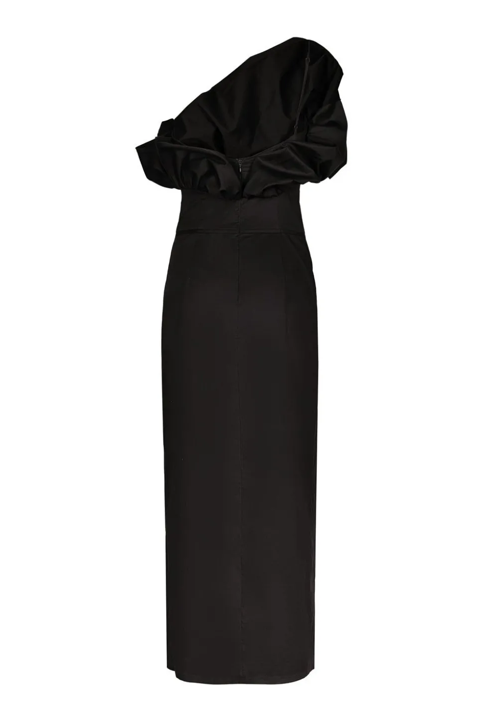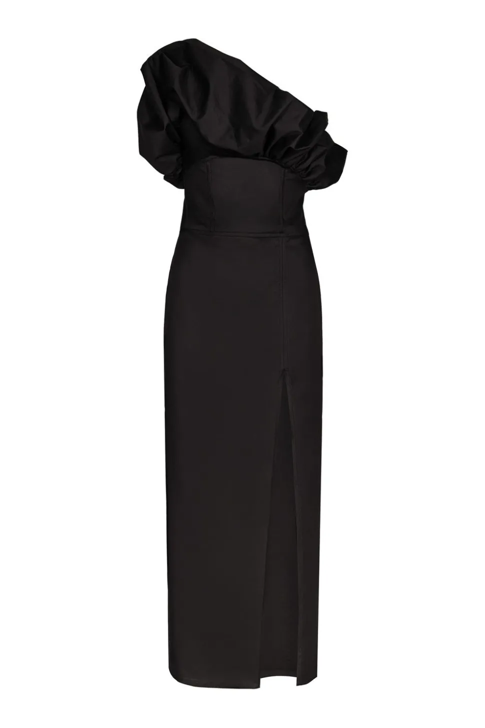 Styling Notes:The Most Striking Aspect Of This Dress Is Its Captivating One-Shoulder Design Adorned With Cascading Ruffles. These Ruffles Not Only Infuse A Hint Of Femininity But Also Contribute To An Attention-Grabbing Visual Element That Elevates The Dress'S Overall Elegance. Made From High-Quality Black Cotton Poplin, This Dress Showcases A Sleek Silhouette And A Leg-Bearing Slit, Making It A Refined Option For Special Events.Size And Fit:Designed For A Slim Fit. True To Size, Please Consult Our Size Chart For Reference.Product Details:Closure: Back Zippercomposition: 97% Cotton, 3% Elastanefabrication: Cotton Poplincolor: Blackdry Cleanmade In Colombiashipping And Return Policies:Complimentary Shipping And Returns. Terms And Conditions Apply. Please Visit Our Shipping And Return Policies.