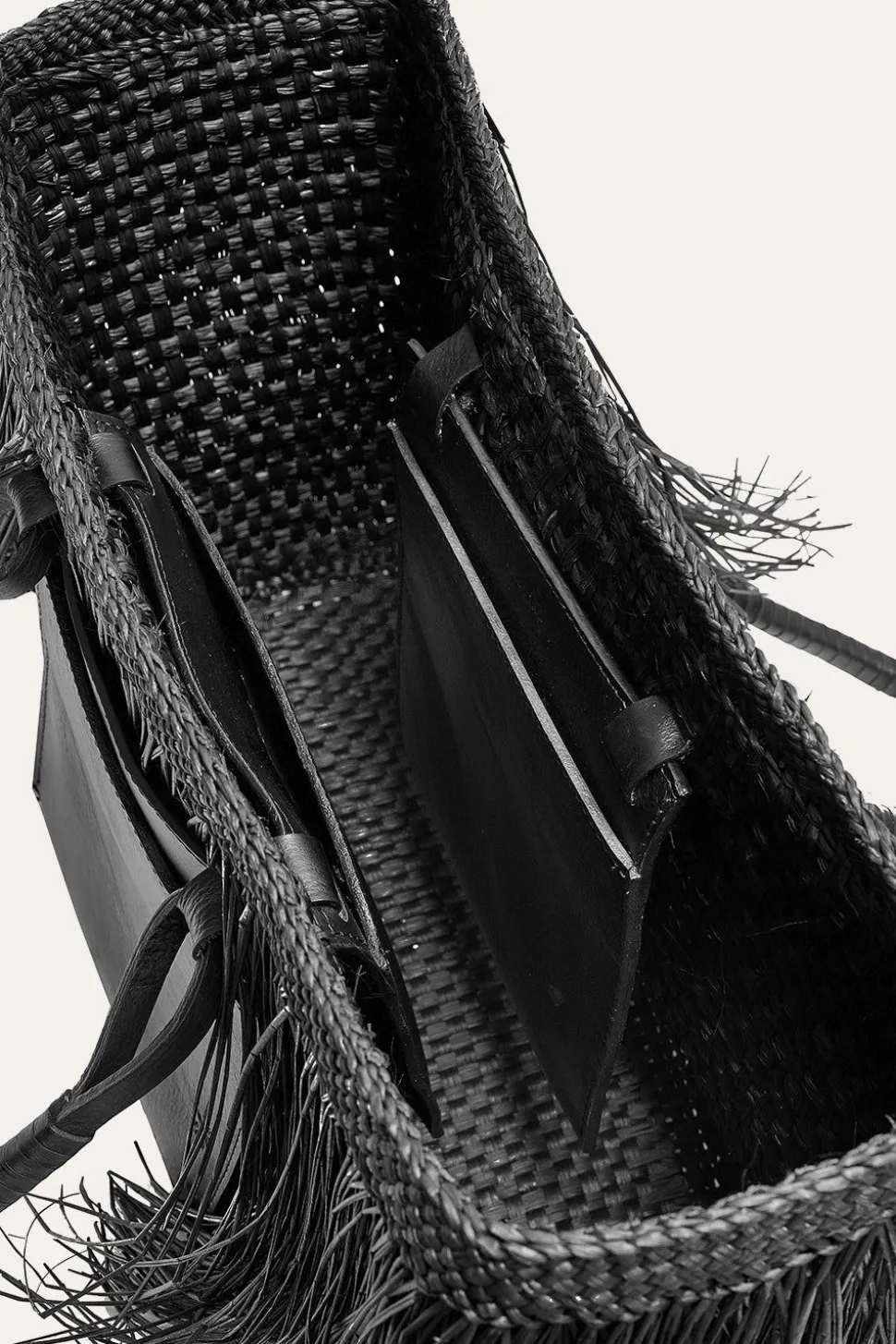 Styling Notes:Johanna Has Returned To Sandona, Nariño, To Work Alongside Talented Artisans. These Artisans Skillfully Craft Beautiful Creations Using Iraca Palm Fibers, Which Are Naturally Dried Before The Weaving Process. In Sandona, One Can Find An Abundance Of Tassels, Creating Endless Fringes. Product Details:Closure: Open Topcomposition: 80% Fiber Natural Iraca Palm, 20% Leatherfabrication: Iraca Bag With Leather Handlecolor: Iconic Blackdry Cleanmade In Colombiadue To Its Natural Materials And Handcrafted Nature, Sizes, Patterns And Colors May Differ, Contributing To Each Product'S Individuality.Shipping And Return Policies:Complimentary Shipping And Returns. Terms And Conditions Apply. Please Visit Our Shipping And Return Policies.