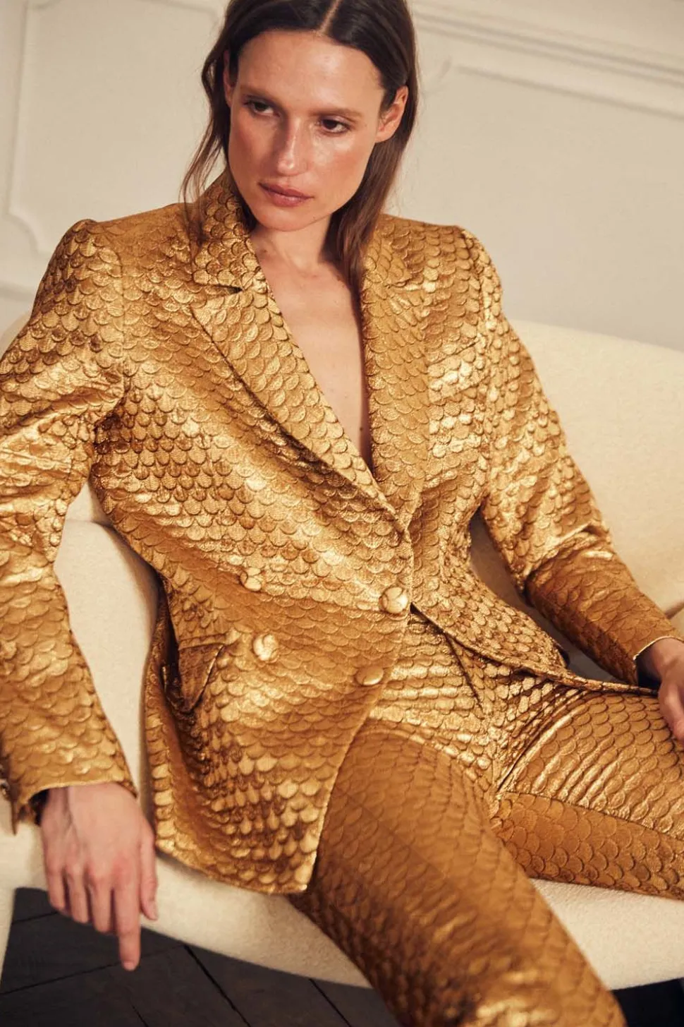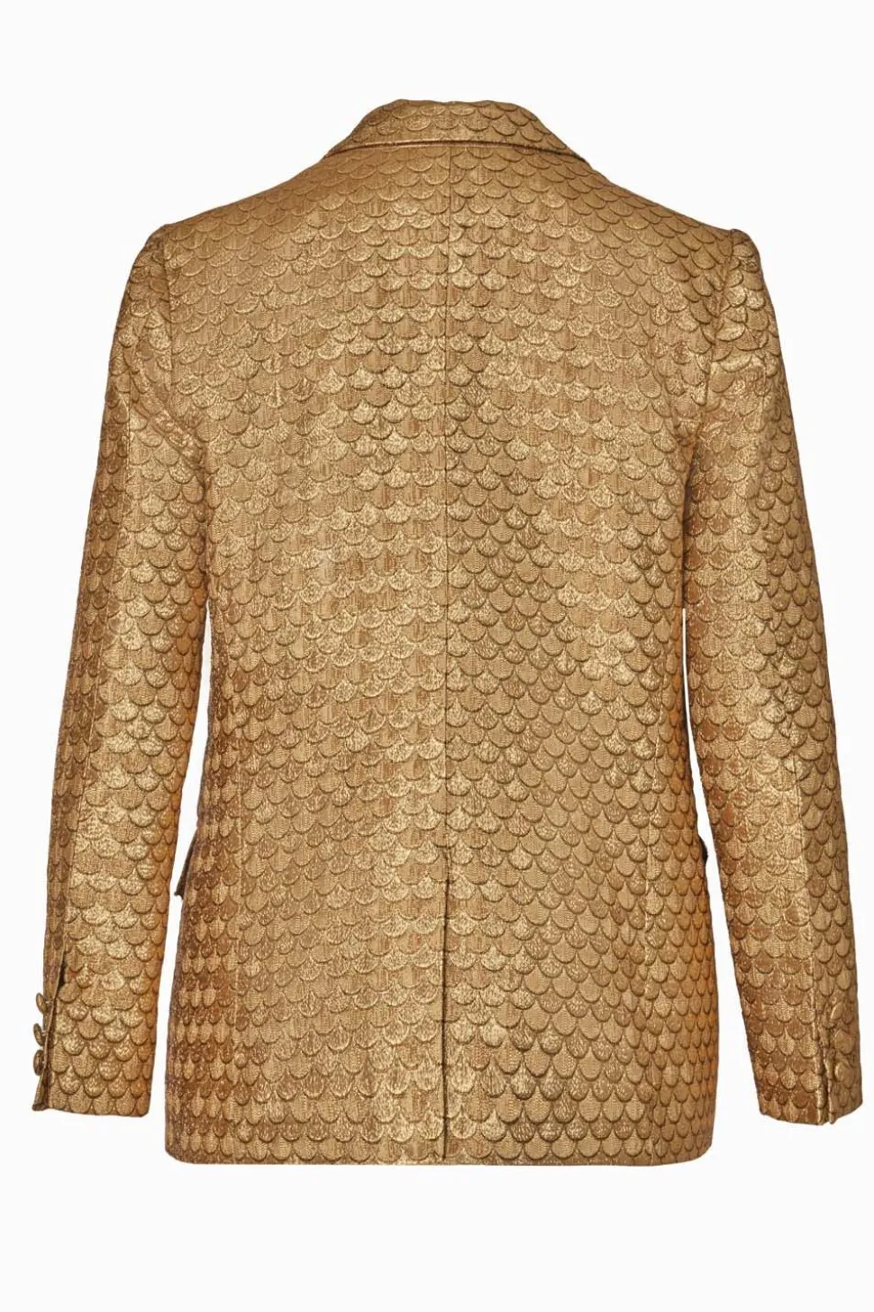 Styling Notes:A Fitted Silhouette In A Sophisticated Gold Jacquard. Elegant And Versatile, This Blazer Makes A Unique Statement Piece To Suit Any Occasion. Product Details:Closure: Front Zippercomposition: 45% Acrylic, 41% Cellulose Acetate, 14% Polyesterfabrication: Jacquardcolor: Golddry Cleanmade In Colombiashipping And Return Policies:Enjoy Complimentary Shipping And Returns. Terms And Conditions Apply. To Learn More, Please Visit Our Shipping And Return Policies.