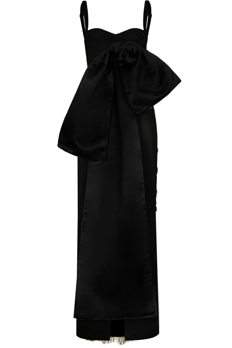 Styling Notes:Elevate Your Style With The &Quot;Tropical Heaven&Quot; Maxi Dress, A Masterpiece Created From Luxurious Embroidered Silk. This Stunning Piece Pays Homage To The Beauty Of The Tropics And Showcases Exceptional Craftsmanship. The Dress Features Intricate Embroidery And A Removable Bow, Adding A Touch Of Elegance And Versatility. It Is A Unique Creation That Is Sure To Leave A Lasting Impression Wherever You Wear It. Size And Fit:Designed For A Slim Fit. True To Size, Please Consult Our Size Chart For Reference.Product Details:Embroidered It Comes With Removable Bowclosure: Back Zippercomposition: 100% Silkfabrication: Embroidered Silk Color: Black/Greendry Cleanmade In Colombiashipping And Return Policies:Complimentary Shipping And Returns. Terms And Conditions Apply. Please Visit Our Shipping And Return Policies.