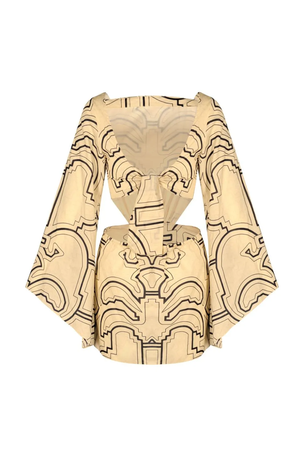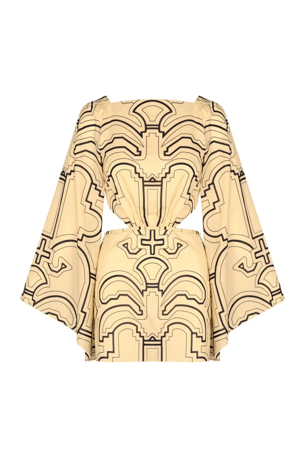 Styling Notes:Make A Statement With This Playful Mini Dress, Perfect For Capturing Summer Allure. The Waist Cutouts Offer Subtle Allure While The Bell Sleeves Add A Touch Of Bohemian Flair. Complete The Look With Delicate Jewelry And Sandals For A Feminine Yet Relaxed Ensemble.Size And Fit:Designed For A Slim Fit. True To Size, Please Consult Our Size Chart For Reference.Product Details:Closure: Tie At Backcomposition: 100% Cottonfabrication: Cotton Light Poplincolor: Nishi-Ibo Palms Ecru/Blackhand Washmade In Colombiashipping And Return Policies:Complimentary Shipping And Returns. Terms And Conditions Apply. Please Visit Our Shipping And Return Policies.